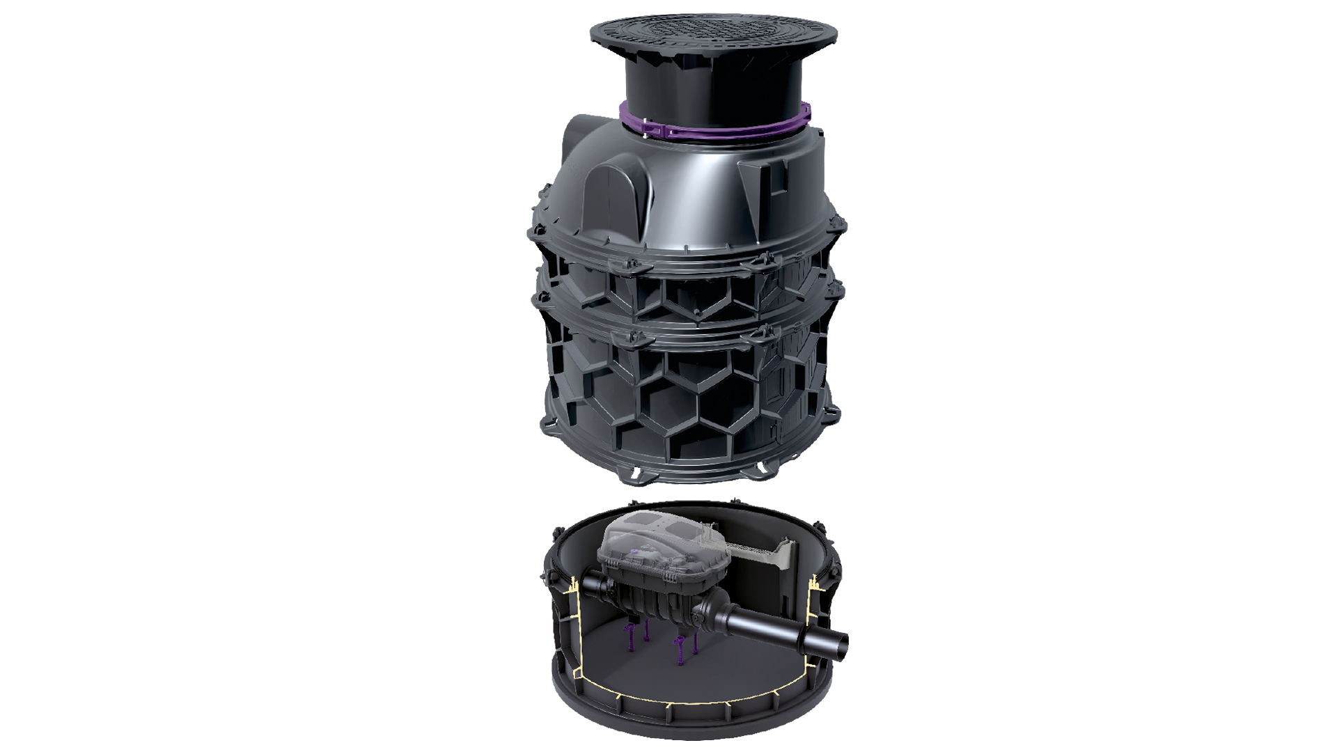 Grazie alla sua struttura modulare con un modulo tecnico e un'ampia scelta di moduli del pozzetto e di rialzi, il pozzetto di ispezione per valvola antiriflusso modulare può essere adattato a tutte le situazioni di posa individuali. È inoltre resistente all’acqua freatica fino a una profondità di 3.000 mm.