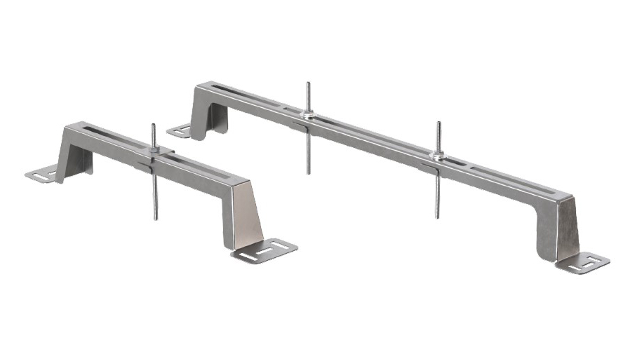 La staffa di montaggio viene fissata saldamente al massetto esistente. Per mezzo di aste filettate, le staffe di montaggio e le aste di trasporto della canaletta vengono collegate e allineate al livello di altezza desiderato. Dopo la colata, le aste di trasporto e le staffe di montaggio possono essere rimosse e viene garantito il posizionamento preciso dei componenti in acciaio inox, senza danneggiare gli strati di separazione inferiori e gli strati di tenuta.