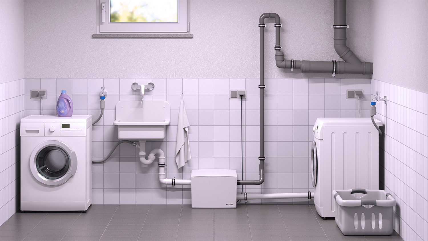 Se Minilift L viene installato nella soletta in calcestruzzo, l’impianto di sollevamento risulta praticamente invisibile. Lo scarico integrato nella copertura raccoglie le acque sporche. Anche in caso di rottura dei tubi o di inondazione, la pompa smaltisce l’acqua sporca continuamente, mantenendo asciutte le cantine.