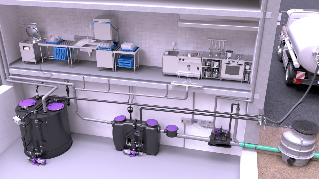 Ancora più efficienti, ancora più igienici: gli impianti per rifiuti umidi sono utilizzati per ottimizzare il processo di smaltimento dei resti di cibo. I resti di cibo vengono triturati finemente in un sistema chiuso e raccolti fino a che il veicolo di smaltimento non viene a prelevarli - senza fatica, senza odori, senza stress.
