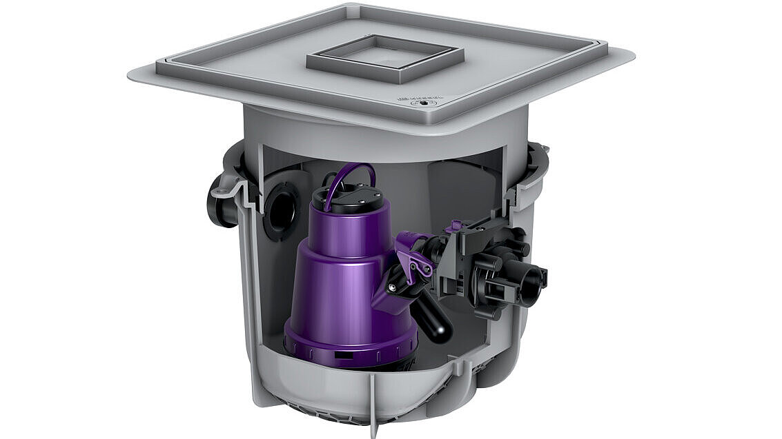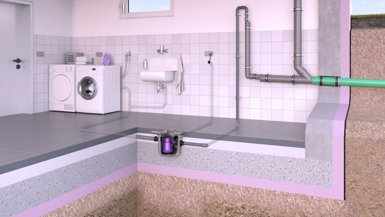 Se il Minilift L viene installato nella soletta, si ottiene un impianto di sollevamento praticamente invisibile. Lo scarico integrato nella copertura raccoglie l'acqua sporca. Anche in caso di rottura di tubature o allagamenti, la pompa smaltisce continuamente quest'acqua sporca, mantenendo così asciutti i locali seminterrati.